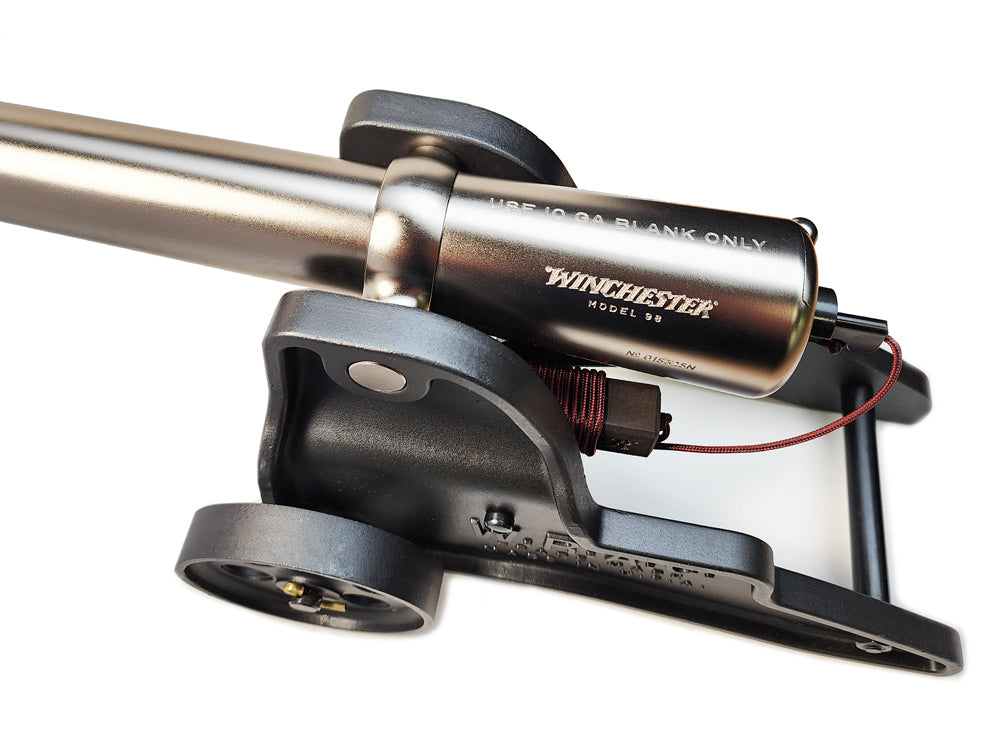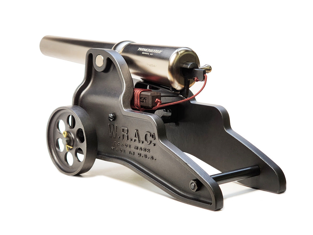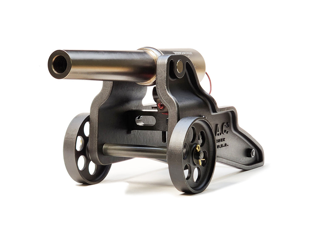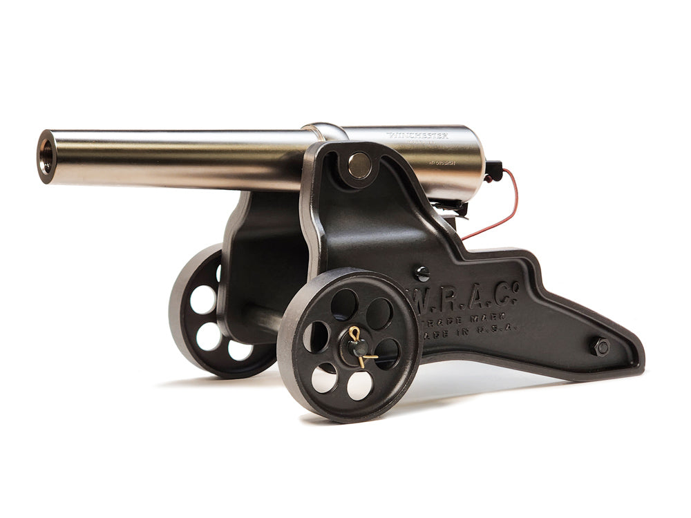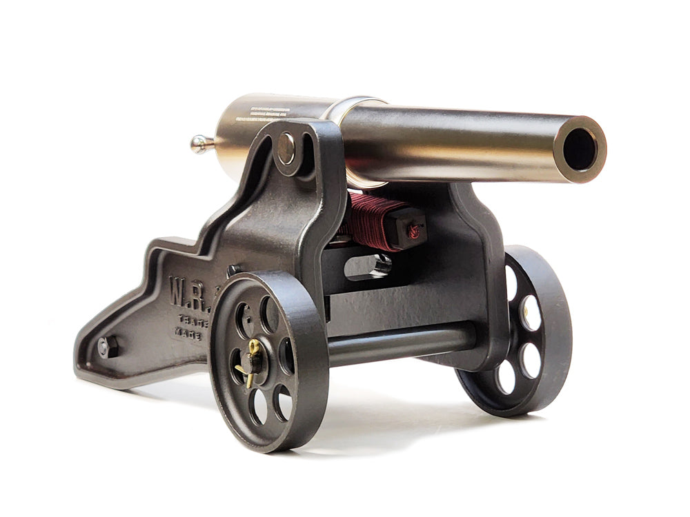 Each Nickel Deluxe cannon is individually serialized and 100% made in the U.S.A. The barrel is precision-machined from cold-rolled steel and finished in a robust modern nickel plating, providing both exceptional corrosion resistance and a refined sheen. The nickel-plated breech components and barrel assembly are mounted to a heavy cast 1018 steel carriage and spoked wheels in a rich gun-blued finish, delivering outstanding durability and display-worthy appeal.
